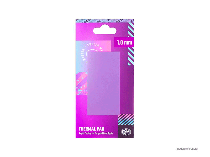 La almohadilla térmica Thermal Pad Pro 1.0mm de Cooler Master está diseñada para mejorar la disipación de calor en componentes electrónicos, ofreciendo transferencia térmica eficiente y alto rendimiento.