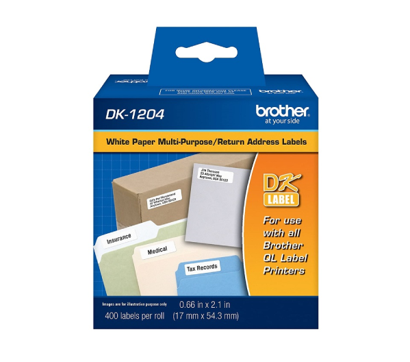 La Cinta Brother DK-1204 es una solución de etiquetado de alta calidad, diseñada para ser utilizada con las impresoras térmicas de la serie QL500, QL550 y QL570 de Brother. Esta cinta incluye 400 etiquetas de tamaño adecuado para una variedad de aplicaciones, desde etiquetas de direcciones hasta códigos de barras y otras necesidades de etiquetado personalizadas.