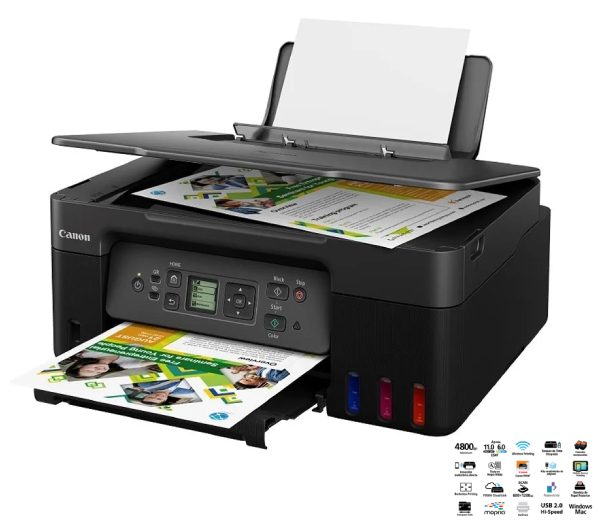 La Canon PIXMA G3170 es una impresora multifuncional de inyección de tinta con sistema continuo que ofrece impresión, copiado y escaneo con conectividad WiFi y USB. Diseñada para hogares y pequeñas oficinas, brinda alta calidad de impresión y ahorro en costos, gracias a su sistema de tanques recargables de alto rendimiento.