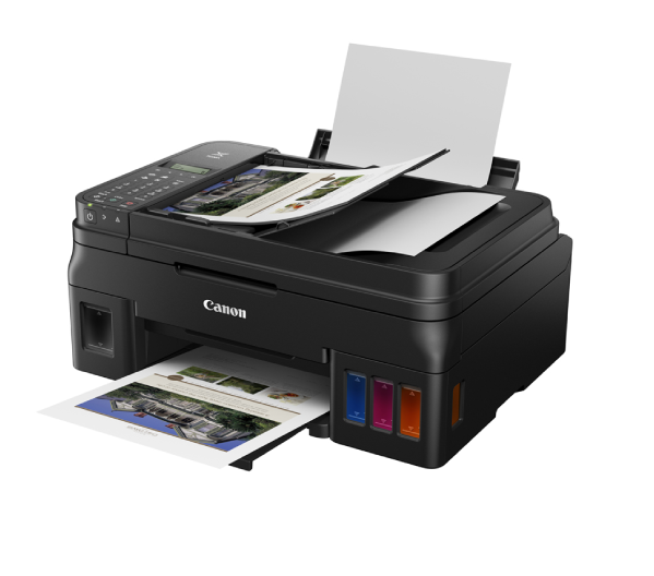La nueva impresora PIXMA G4111 proporciona la capacidad de imprimir, copiar, escanear y enviar fax, como también un alimentador automático de documentos (ADF) de 20 hojas y una pantalla LCD de 2 líneas. Esta impresora también proporciona muchas de las funciones populares que se encuentran en los modelos anteriores tal como el sistema de tinta híbrido integrado, diseño compacto y capacidades de impresión sin bordes. Con el método de recarga de tinta ofrece un menor costo por página y una mayor producción de páginas, pues produce hasta 6.000 páginas por botella utilizando la tinta negra y un total de hasta 7.000 páginas utilizando la combinación de las tintas de color. Las botellas de tinta ofrecen una capacidad de tinta sustancial con 135 ml en la botella de color negro y 70 ml por cada botella de tinta de color. Construida para la conveniencia del usuario, esta nueva impresora ofrece una conectividad Wi-Fi más fácil y dinámica que permite tener impresiones inalámbricas desde cualquier dispositivo a través de su aplicativo canon print.