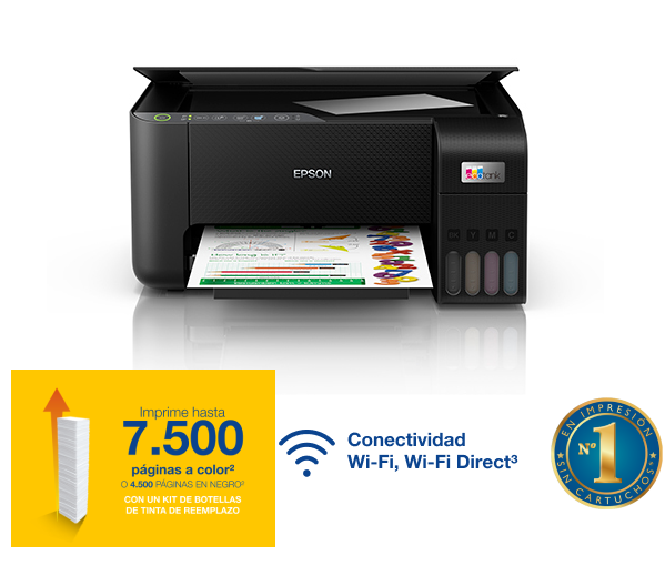 Con tecnología Heat-Free Micro Piezo, ofrece impresiones rápidas y sin calentamiento, optimizando el consumo energético. Los tanques de tinta recargables permiten imprimir hasta 4,500 páginas en negro y 7,500 a color con las botellas incluidas.