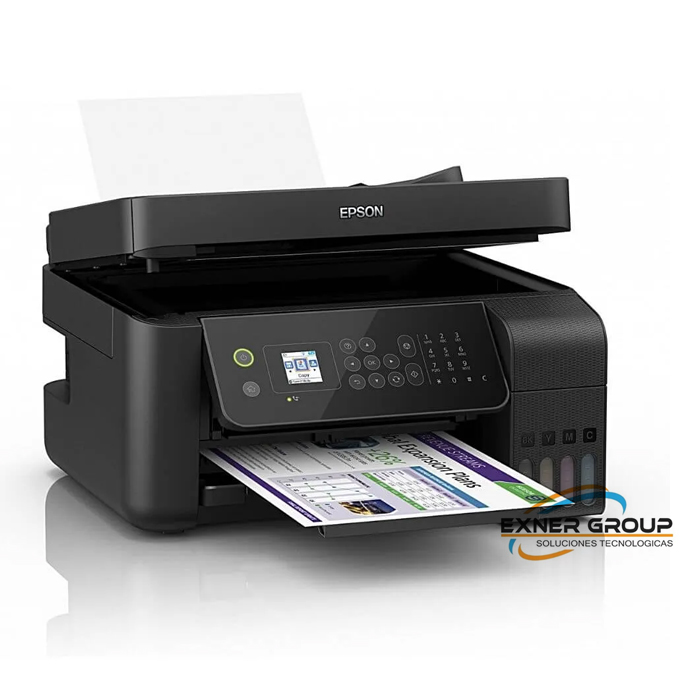 La multifuncional inalámbrica EcoTank L5290 te ofrece rendimiento y eficiencia con la revolucionaria impresión sin cartuchos con productividad para tu negocio en casa. Ahora con tanque frontal y nuevo sistema de llenado codificado EcoFitTM, automático, limpio y sin errores. Con gran ahorro en costos de impresión vs. cartuchos, la EcoTank® L5290 te permite imprimir hasta 7.500 páginas a color o 4.500 páginas en negro con gran calidad y alta velocidad. EPSON