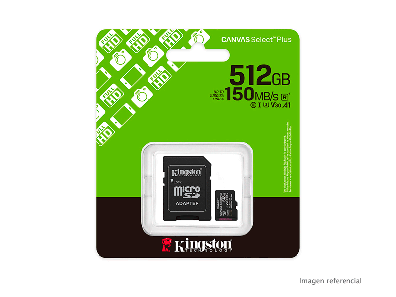 La memoria MicroSD Kingston 512GB ofrece alto rendimiento y gran capacidad de almacenamiento, ideal para smartphones, cámaras, tablets y drones. Permite guardar fotos, videos en alta calidad y aplicaciones sin preocuparte por el espacio.