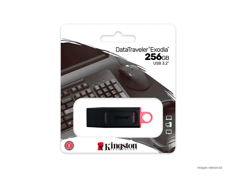 La memoria USB Kingston DataTraveler Exodia 256GB USB 3.2 brinda alta capacidad y buen rendimiento para almacenar y transportar archivos de forma segura. Gracias a su tecnología USB 3.2 permite transferencias rápidas, ideal para documentos, fotos, videos y backups. Su diseño compacto con tapa protectora facilita el uso diario y transporte.