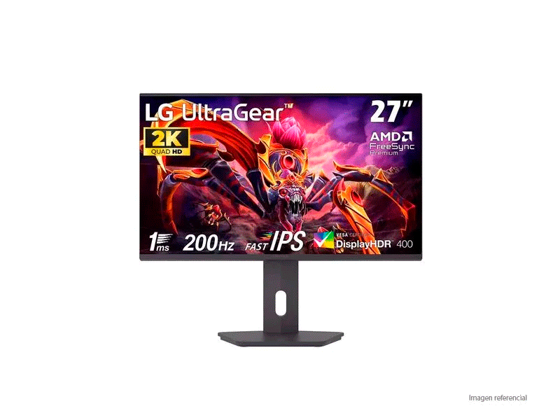 El LG 27G610A-B 27 Inch Gaming Monitor de LG es un monitor diseñado para gaming de alto rendimiento, ofreciendo una resolución QHD (2560 × 1440) y una velocidad de respuesta de 1 ms GTG, ideal para juegos rápidos y competitivos. Su panel IPS proporciona colores precisos y ángulos de visión amplios, mientras que la frecuencia de 200Hz asegura imágenes extremadamente fluidas sin desenfoque.
