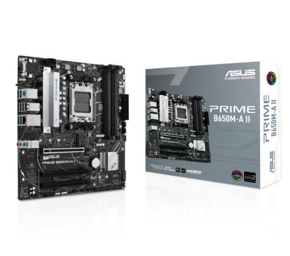 La motherboard ASUS AMD AM5 PRIME B650M-A II ofrece una plataforma robusta y moderna para construir sistemas con procesadores AMD de última generación. Cuenta con soporte para memorias DDR5, múltiples puertos USB, y conectividad avanzada para garantizar un rendimiento estable y eficiente. Su diseño compacto micro-ATX es ideal para configuraciones versátiles, desde equipos de oficina hasta estaciones de trabajo gaming.
