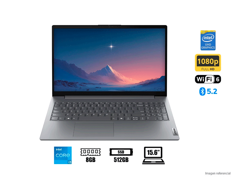 La Notebook Lenovo V15 G5 IRL de 15.6″ es una laptop ideal para el día a día, ya sea para trabajo, estudio o entretenimiento. Su pantalla Full HD ofrece imágenes claras y nítidas, perfecta para trabajar con documentos, navegar por internet o ver tus series favoritas. Integra un procesador Intel Core i3-1315U que alcanza hasta 4.5 GHz, proporcionando un rendimiento ágil para tareas comunes como uso de Office, videollamadas, correo electrónico y aplicaciones educativas. Además, sus 8 GB de memoria DDR5-3200 MHz ayudan a mantener todo fluido incluso con varias aplicaciones abiertas.