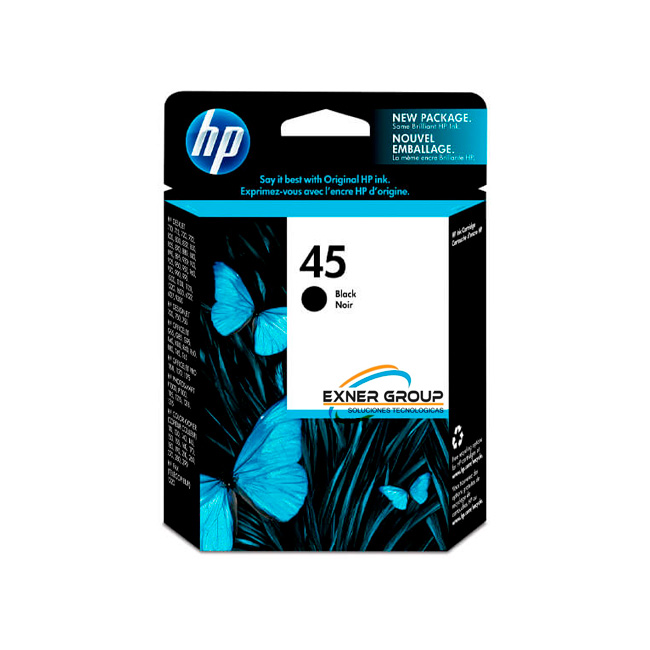 Cartucho de Tinta HP 45 Negra Original, Garantice resultados confiables de alta calidad y a altas velocidades página tras página. Los cartuchos de tinta HP originales ofrecen gran confiabilidad y resultados extraordinarios, para que su impresora común o Todo-en-Uno HP rinda al máximo.