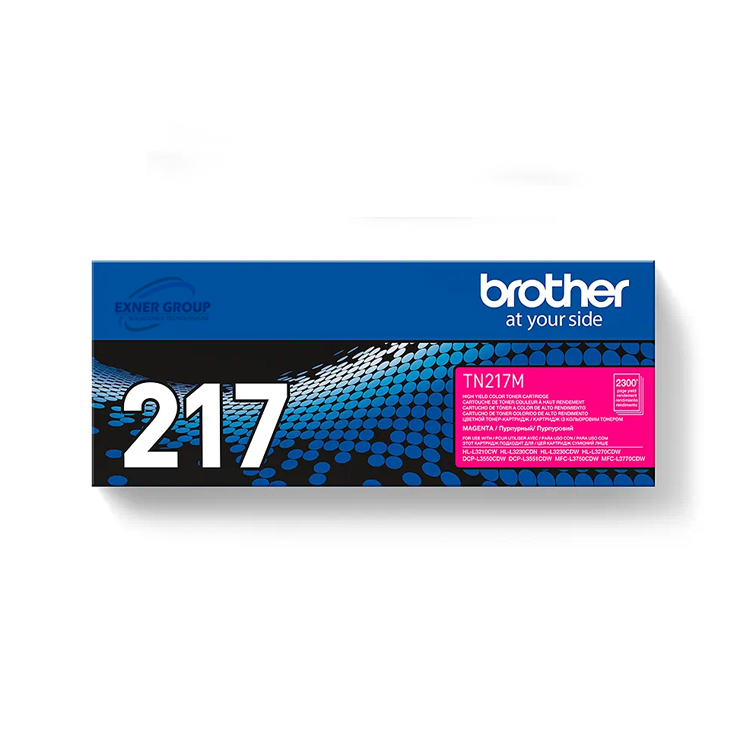 Cartucho de tóner Magenta de Alto rendimientoTN-217M original de Brother. Calidad de impresión láser en color profesional en la que puede confiar constantemente para hasta 2300 páginas ‡. Diseñado de forma inteligente para trabajar al unísono sin problemas con su impresora Brother. El tóner original de Brother produce impresiones en color intensas que resisten el paso del tiempo. Brother ofrece a los clientes una forma respetuosa con el medio ambiente para desechar los cartuchos originales de Brother.