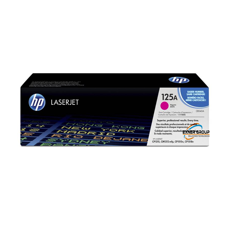 | Cartucho de tóner para impresoras HP LaserJet CP1210, CP1215, CP1217, CP1510, CP1515, CP1518, CM1312, con rendimiento de 1.400 páginas, tóner HP 125A original Código CB543A de Color magenta. |