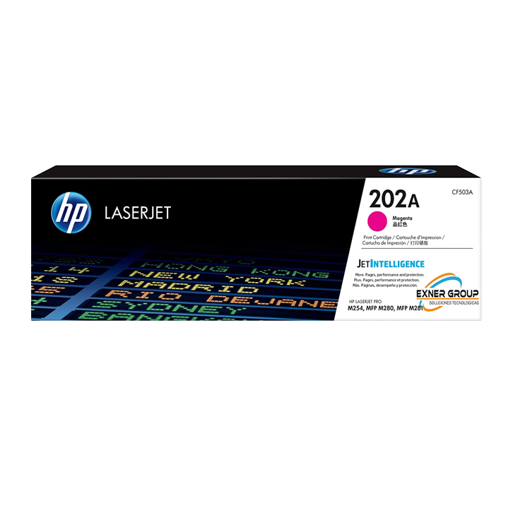 | Cartucho de tóner para impresoras HP LaserJet M254DW, M254DN, M281FDW, con rendimiento de 1.300 páginas, tóner HP 202A original código CF503A de color magenta. |