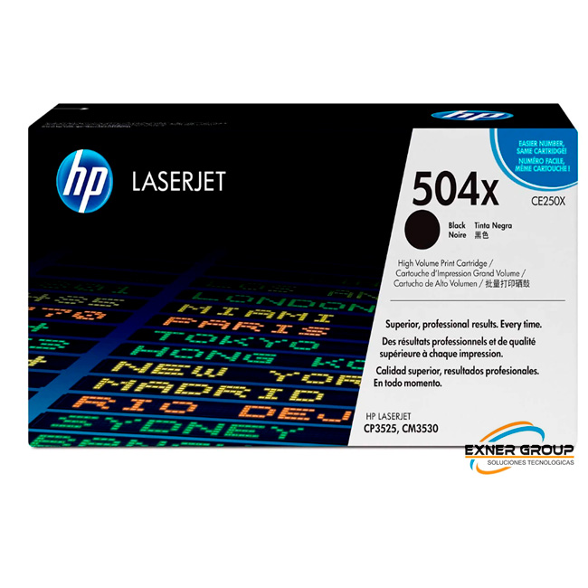 El cartucho de tóner HP 504X para LaserJet mantiene la productividad empresarial alta. Evite la pérdida de tiempo y el desperdicio de los consumibles con este cartucho de tóner de confianza HP original diseñado para la impresión frecuente de correos electrónicos, borradores y documentos con un texto negro nítido. “Siga confiando en los resultados de calidad profesional y siempre intensa usando un tóner HP original con fórmula especial.”