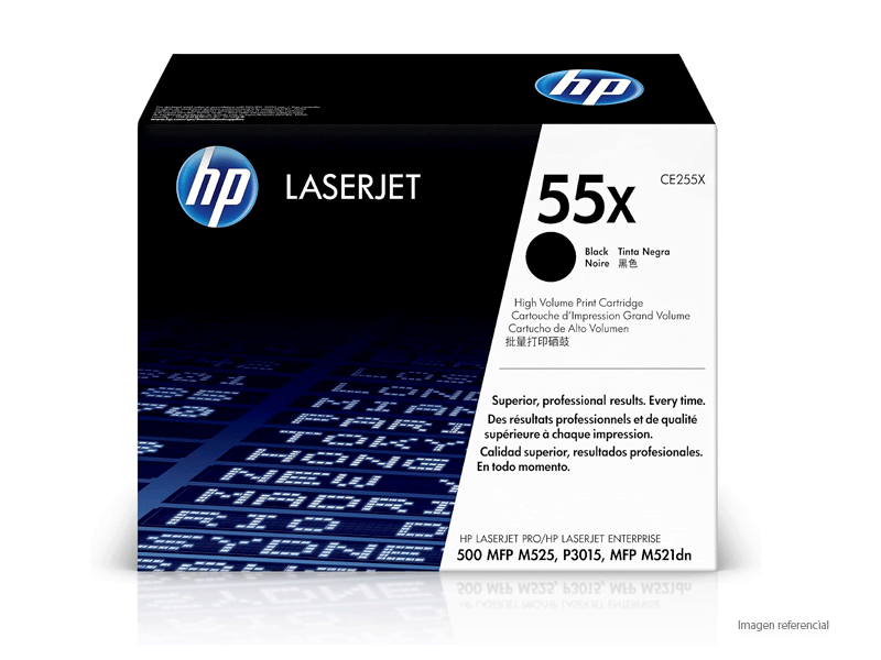 El Toner HP CE255X 55X Negro ofrece impresiones de alta calidad con textos definidos, negros profundos y excelente precisión en cada documento. Diseñado para entornos empresariales que requieren alto volumen de impresión y resultados profesionales constantes.