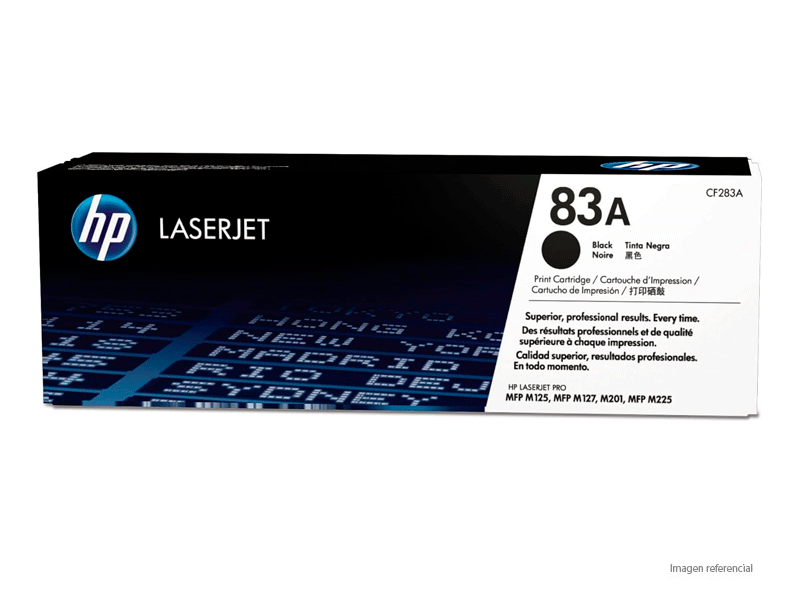 El cartucho HP CF283A 83A garantiza compatibilidad total con la impresora y protección del equipo, evitando errores de impresión, atascos o problemas de calidad. Su formulación está optimizada para entregar texto claro y consistente en cada documento.