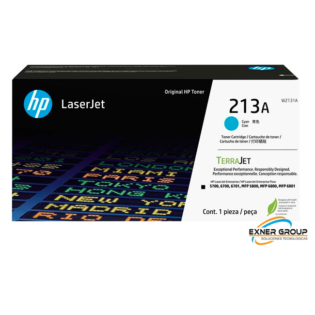 Cartucho de tóner original HP LaserJet 213A Cian, Imprimir hasta El rendimiento del cartucho medio es de 3500 páginas estándar. Valor de rendimiento declarado según ISO/IEC 19752. El rendimiento de siempre Confíe en el tóner original HP para obtener impresiones impactantes y un rendimiento de impresión excepcional en el que puede confiar. Definición de momentos, resultados vibrantes. Represente sus ideas comerciales con impresiones en color de máxima calidad y haga que su trabajo se destaque sobre el resto.