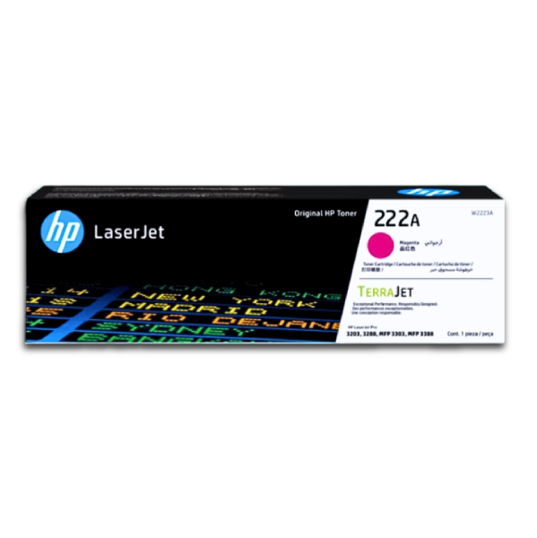 Cartucho de tóner original HP LaserJet 222A Magenta Imprimir hasta El rendimiento del cartucho medio es de 1200 páginas estándar. Valor de rendimiento declarado según ISO/IEC 19752. El rendimiento de siempre Confíe en el tóner original HP para obtener impresiones impactantes y un rendimiento de impresión excepcional en el que puede confiar. Definición de momentos, resultados vibrantes. Represente sus ideas comerciales con impresiones en color de máxima calidad y haga que su trabajo se destaque sobre el resto.