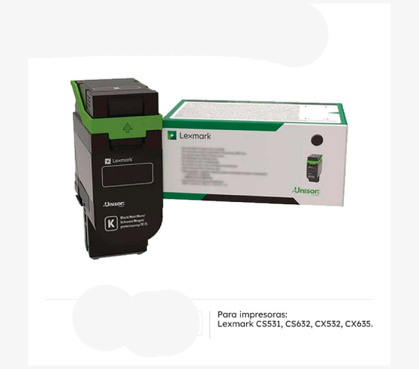 Compatibilidad: Este cartucho es completamente compatible con las impresoras Lexmark CS53, CS632, CX532 y CX635, lo que asegura un rendimiento óptimo y una excelente calidad de impresión.